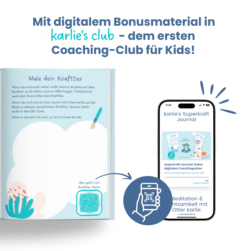 Die QR-Codes sind mit dem geschützten Mitgliederbereich von karlie's club verknüpft und führen zum Bonusmaterial in Form von Meditationen, Traumreisen und kleinen Video-Botschaften mit Otter karlie & Kindercoach Freya.